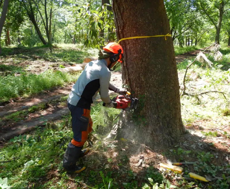 下刈り期間を終えて数年が経過してから、植栽木の生育を妨げる他の樹種を刈り払う作業のことで、植栽木でも生育が不良な木は除去します。刈払機で除去できない場合はチェンソーを使用します。除伐は特に刈刃の目立てによる切れ味を良くして作業できるかが重要です。下刈り・除伐が上達するとあなたはもう刈払いマスターです。